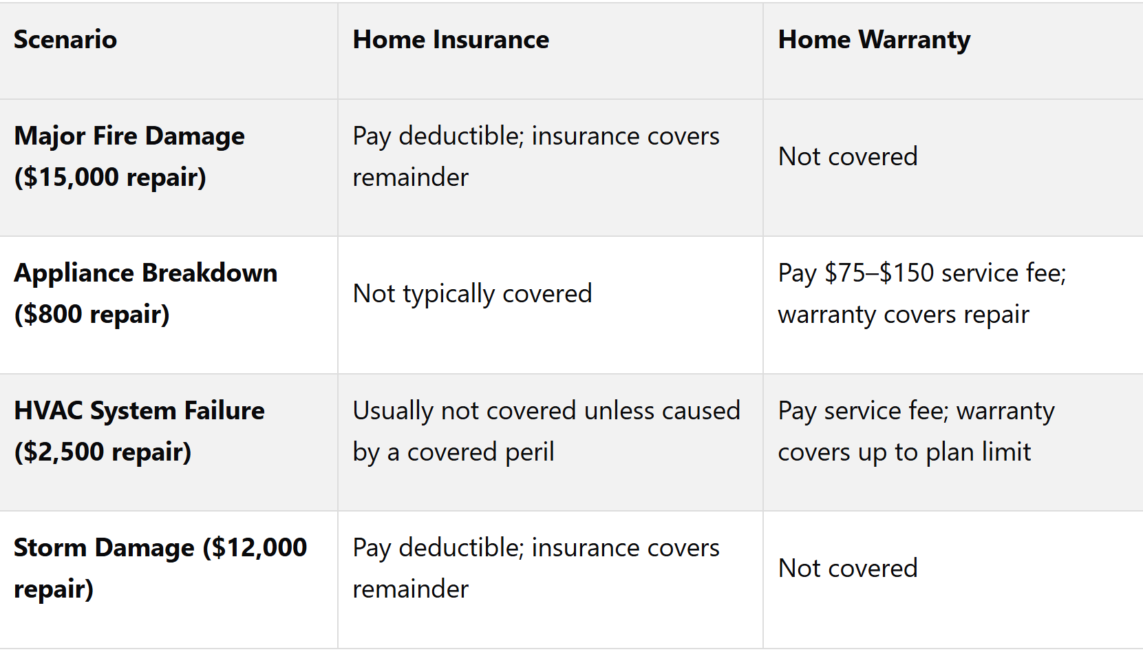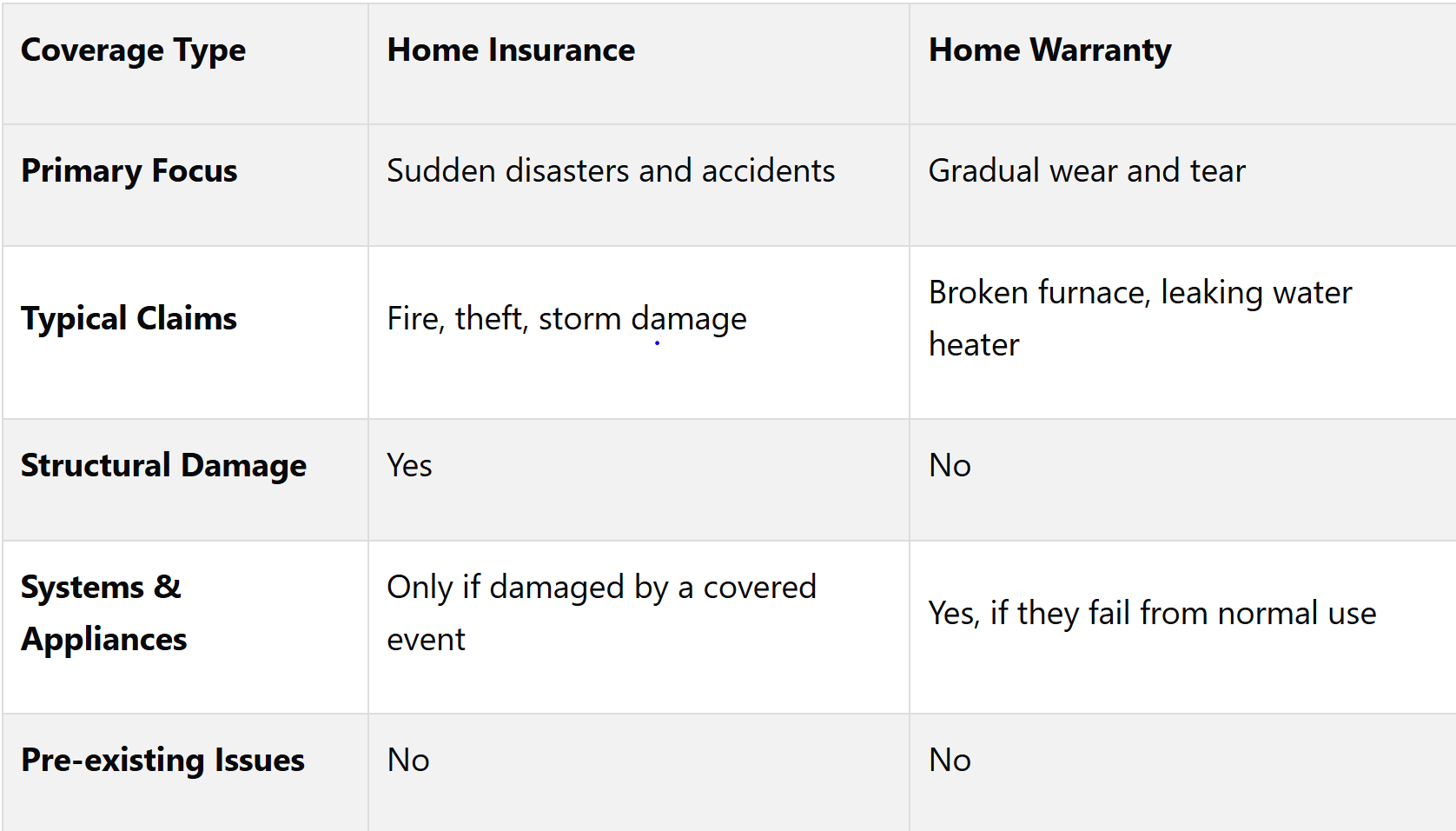 What Each Option Covers: Home Insurance vs. Home Warranty